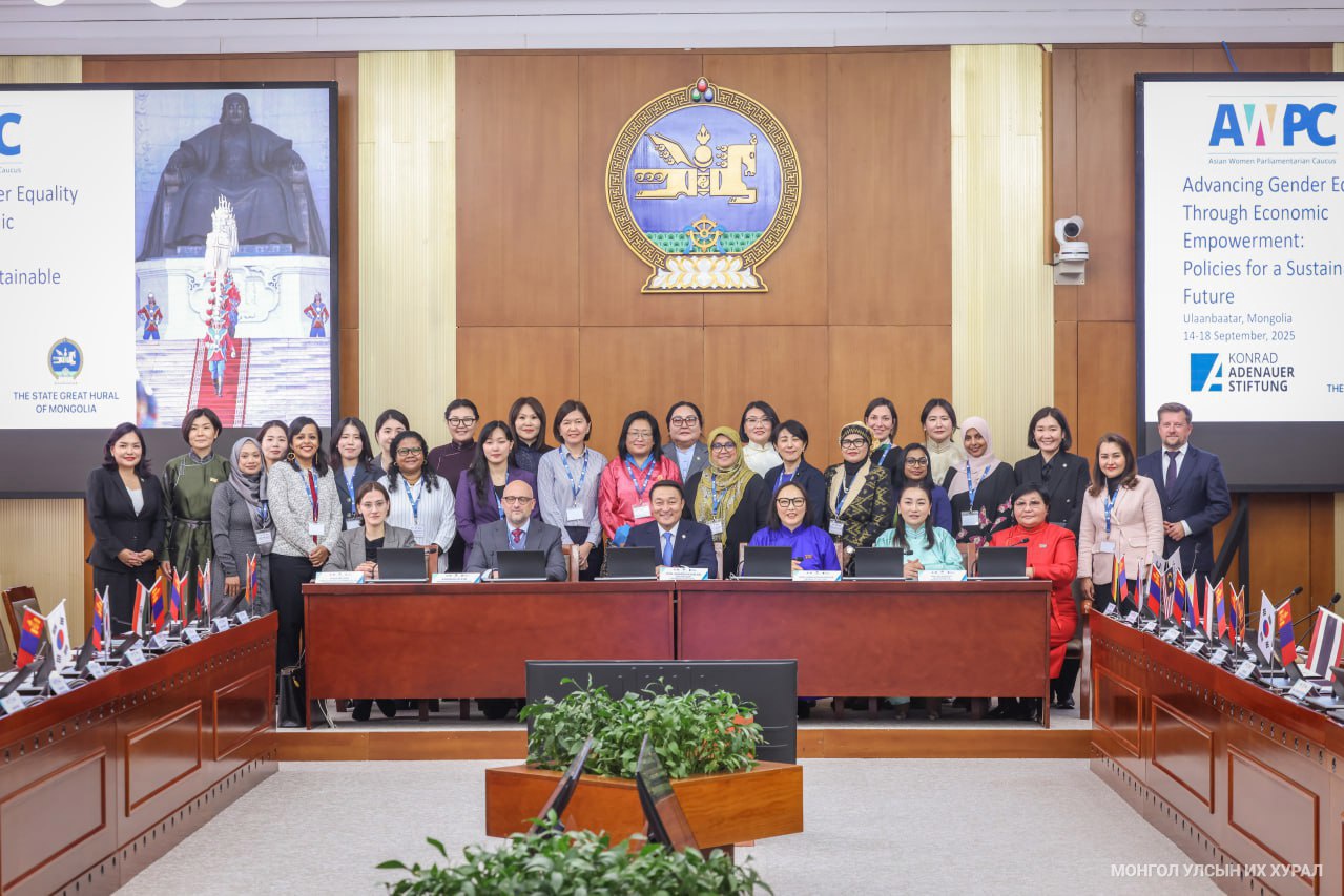 Монгол Улсын Их Хурлын гишүүн, Ардчилсан Эмэгтэйчүүдийн Холбооны Ерөнхийлөгч, Азийн Эмэгтэй Парламентчдын бүлгийн гишүүн Б.Жаргалангийн санаачлагаар Азийн Эмэгтэй парламентчдын бүлэг 2025 оны чуулга, уулзалтаа Монгол Улсад зохион байгуулж байна. “Эдийн засгийн эрх мэдлийг тэлэх замаар жендэрийн тэгш байдлыг хангах нь: Тогтвортой ирээдүйн бодлого” сэдэвт чуулганы нээлтийн хуралдаан өнөөдөр (2025.09.15) Улаанбаатар хотноо Төрийн ордонд эхэллээ. Чуулга уулзалтыг нээж Монгол Улсын Их Хурлын дарга Д.Амарбаясгалан, УИХ-ын дэд дарга Х.Булгантуяа, УИХ-ын гишүүн Б.Жаргалан, Конрад Аденуэрын Сангийн Азийн бүсийг хариуцсан захирал Андреас Кляйн, ХБНГУ-аас Монгол Улсад суугаа Элчин сайдын яамны дэд тэргүүн Хана Бекер нар үг хэлж, мэндчилгээ дэвшүүллээ.